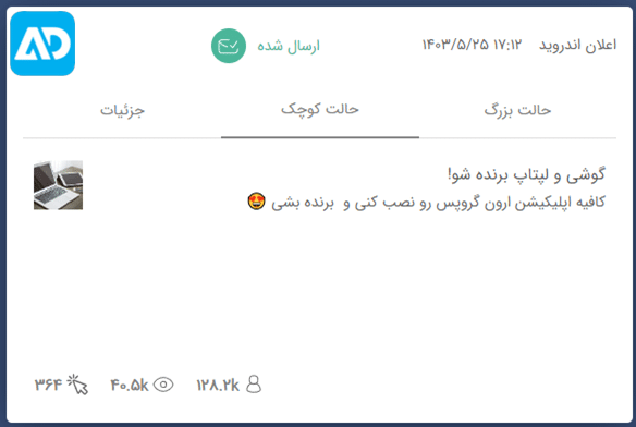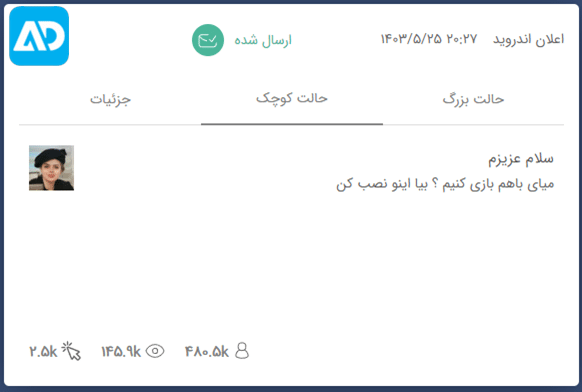 توضیحات: اجرای تبلیغات پوش برای افزایش نصب اپلیکیشن اندروید