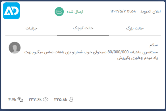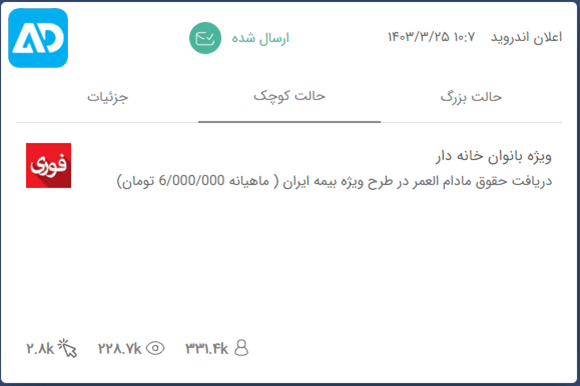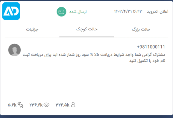 نمونه پوش نوتیفیکیشن + تعرفه تبلیغات پوش موبایل