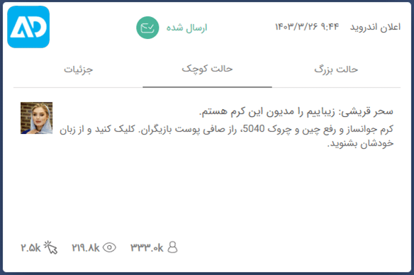 نمونههای پوش نوتیفیکیشن ارسالی توسط سورن اد