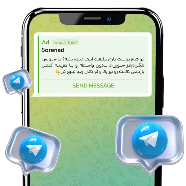 با قابلیت جدید تلگرام، با تلگرام ادز سورناد تبلیغتون دقیقاً جلوی چشم مخاطب واقعی نمایش داده میشه؛ چه در کانالهای پرمخاطب و رقبا، چه در بخش سرچ تلگرام با کلمات دلخواه شما!